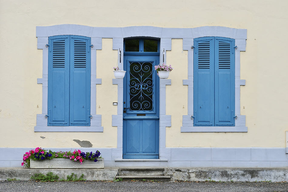 A fine example of how blue and green make a perfect pair is demonstrated in this picture of a vivid blue door with lots of greenery on the walls. The energetic vibe of blue and green together ties the knot as a match made in heaven.