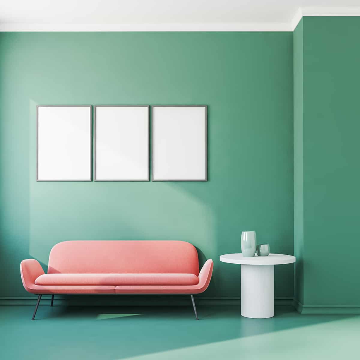 If you want to really make seafoam green pop, then position it next to a tangerine accent, for example, a tangerine cushion on a seafoam green chair. Be sure to use a neutral third color with these shades to prevent them from becoming too intense.