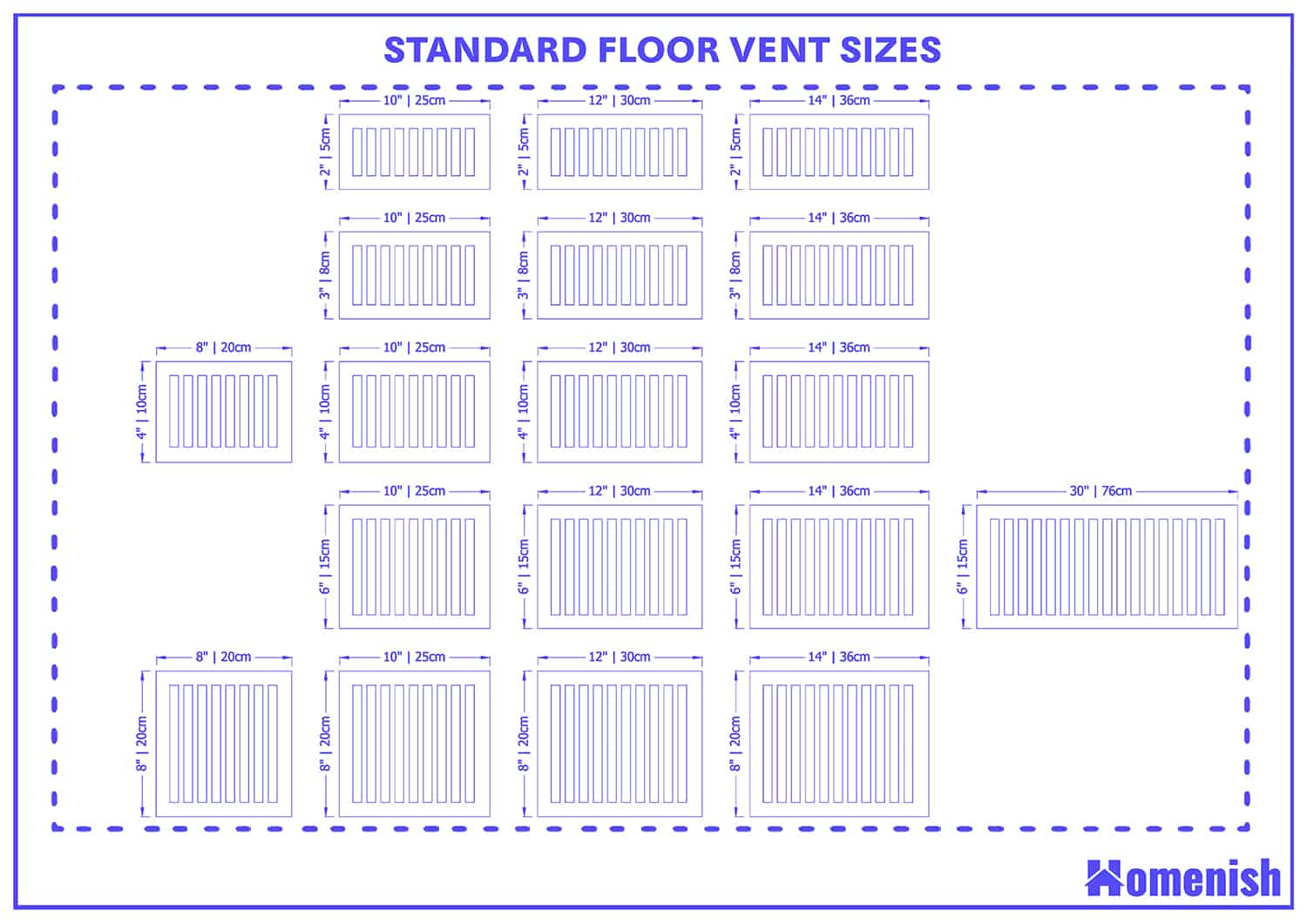 Floor vents and their corresponding vent covers come in a range of standard sizes. This is because the ductwork itself also comes in standard sizes to make everything easier to coordinate and fit.
