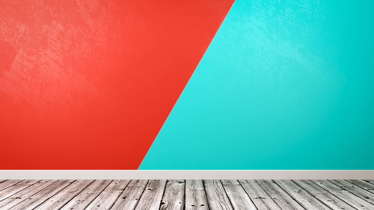 A diagonal divide can be achieved on a wall by applying a length of decorator’s tape at a diagonal angle across a wall and painting one color on one side of the tape and another color on the other side of the tape.